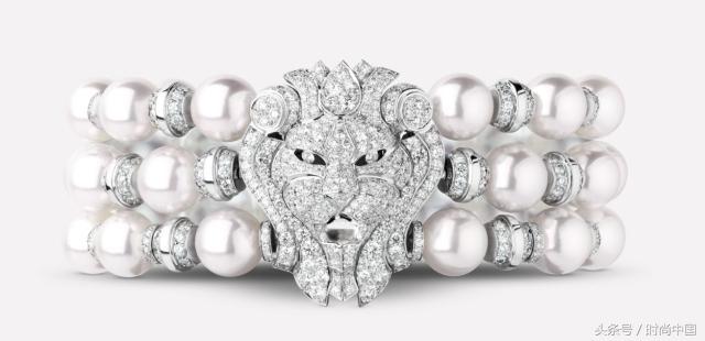 這款三圈獅子圖案手鐲,白18K金鑲嵌了鉆石與珍珠,顏色和材質(zhì)都是小編所愛,但是小編表示只能默默喜歡,畢竟100萬對于吾等小輩來說可謂天價(jià),天價(jià),天天價(jià)!