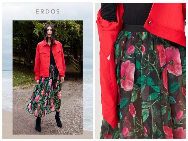 劉雯身穿ERDOS玫瑰真絲半身裙