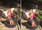 美國小女孩與小馬互相抓撓取樂 場面可愛溫馨