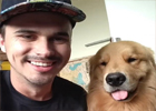 神同步!可愛狗狗模仿主人微笑噘嘴打哈欠