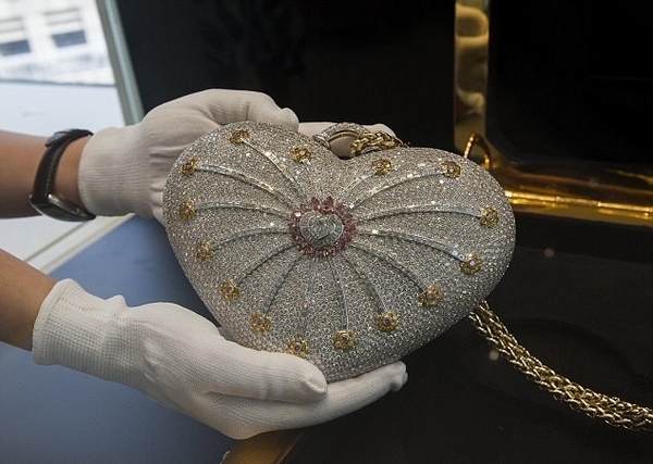 但是,世界最貴的作品并不是黛比的專(zhuān)利。據(jù)稱(chēng),就在10月中旬,世界上最貴的包包出世。這款心形包包由10位頂級(jí)工藝師費(fèi)時(shí)8800個(gè)小時(shí)合作完成,上面鑲有4517顆黃鉆、粉鉆和白鉆,取名為“一千零一夜鉆石包包”,售價(jià)380萬(wàn)美元(約合人民幣2520萬(wàn)元)。目前,這款包包被拍賣(mài)者陳列在香港,預(yù)計(jì)11月被送到日內(nèi)瓦和倫敦巡展。