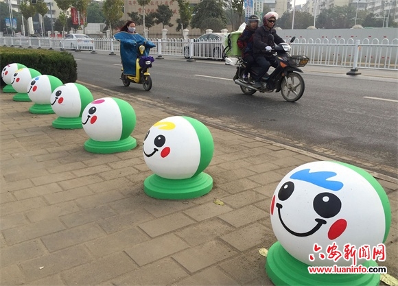 11月16日,市民從城區(qū)淠河路一排石墩畫邊騎車走過。近日,在城區(qū)淠河路文化墻、云露橋、清真寺附近,景觀帶邊一排排石墩被畫上了12生肖、各類卡通圖像,原本一個個冰冷的石墩變得憨態(tài)可掬,各類圖案栩栩如生,煥發(fā)出生命和活力,被網(wǎng)友拍成圖片在朋友圈里流傳,成為老淠河畔一道別樣的風景。(記者田凱平攝 )