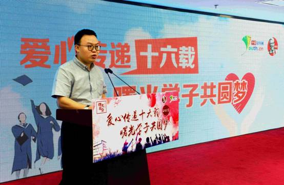 “曙光基金不僅照亮了我的路,更讓我成為一道曙光,去照亮更多人的路?!?月10日,由中國青年網(wǎng)和百勝中國共同舉辦的“愛心傳遞十六載曙光學(xué)子共圓夢”·肯德基曙光基金優(yōu)秀學(xué)子頒獎典禮上,獲獎學(xué)子代表之一宋會濤這樣總結(jié)自己的收獲。中國青年網(wǎng)副總經(jīng)理繆晨琦,中國志愿服務(wù)聯(lián)合會研究會副秘書長、中國青年志愿者協(xié)會副秘書長張俊虎,百勝中國首席公共事務(wù)官王立志,北京肯德基總經(jīng)理趙莉等出席此次活動。