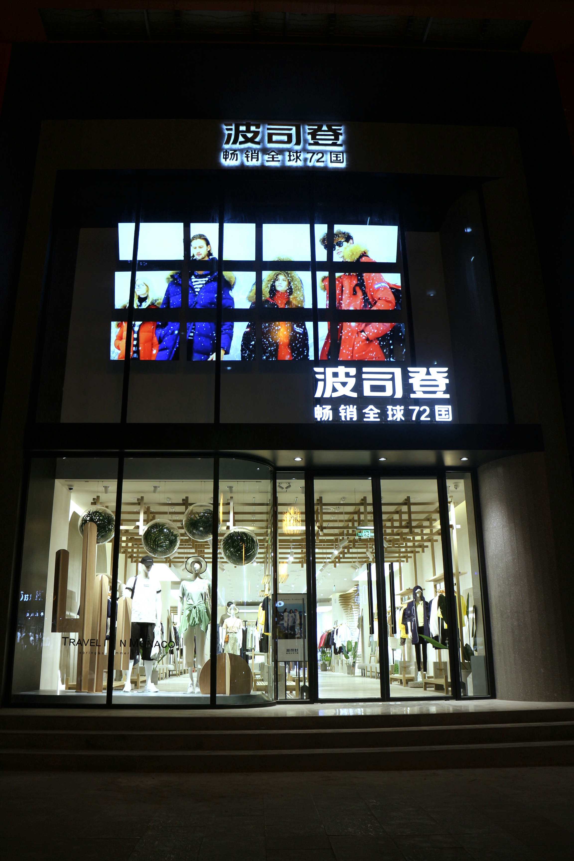 7月18日,波司登在北京水立方召開“服裝行業(yè)唯一入選國家品牌計(jì)劃發(fā)布會”之際,公布了全新品牌標(biāo)志和終端門店形象。而就在新標(biāo)發(fā)布的當(dāng)晚,波司登全國有1000多家門店一夜之間竟然全部更換了新品牌標(biāo)志。所有的店鋪形象煥然一新,中文標(biāo)志結(jié)合“暢銷全球72國”,展現(xiàn)品牌國際地位的同時(shí)也彰顯了中國品牌的自豪感。