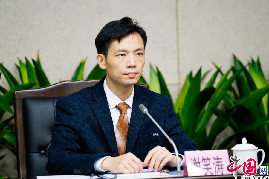 廣州市人民政府新聞辦公室副調(diào)研員謝笑濤主持發(fā)布會  中國網(wǎng)李康  攝