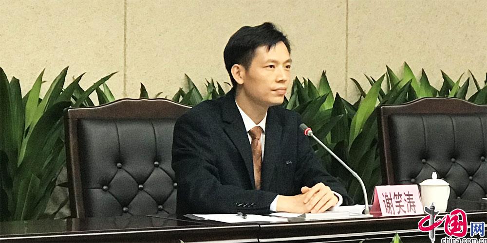 廣州市人民政府新聞辦公室副調(diào)研員謝笑濤主持發(fā)布會(huì)