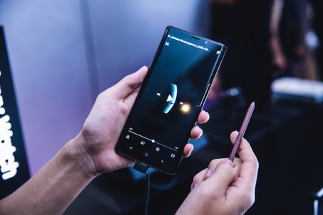 作為三星Galaxy Note系列的標(biāo)志性功能,此次針對(duì)S Pen也進(jìn)行了新的升級(jí)。搭載低功耗藍(lán)牙模塊的S Pen可通過(guò)藍(lán)牙連接實(shí)現(xiàn)對(duì)手機(jī)的遙控操作。用戶(hù)只需抽出Galaxy Note9的S Pen即可使用遙控自拍或合影、幻燈片翻頁(yè)甚至快進(jìn)視頻、切換音樂(lè)等功能。S Pen遙控功能可支持10米開(kāi)放空間距離,另外,當(dāng)電量不足時(shí),用戶(hù)僅需將S Pen放回Galaxy Note9中即可充電。