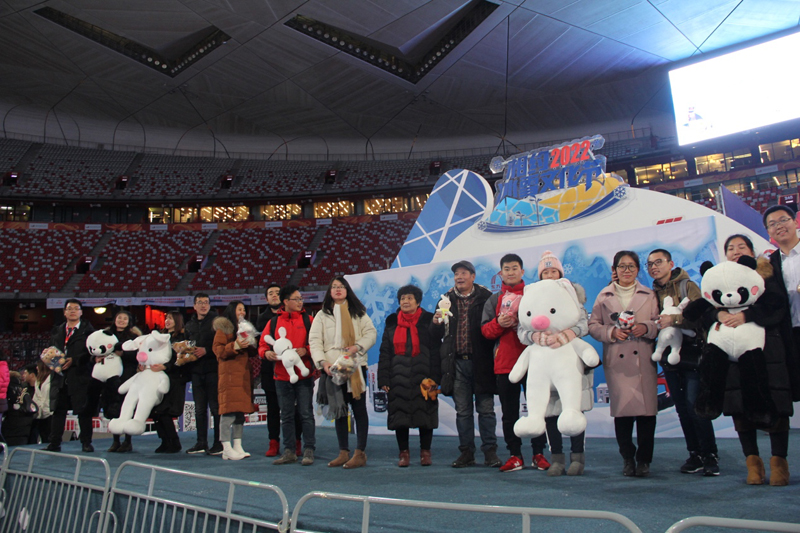 在兩場的比賽活動中,各組參賽選手都積極踴躍,熱情十足。盡管天氣寒冷,但依舊擋不住他們的熱情。隨著裁判的一聲令下,參賽選手的比拼也越加激烈,加油吶喊聲響徹鳥巢。在趣味十足的抽獎環(huán)節(jié)中,現(xiàn)場游客的熱情持續(xù)高漲,品類豐富每的獎品讓每一位參與游客都樂在其中。最后,在歡聲笑語中整場冰雪嘉年華活動圓滿結(jié)束。