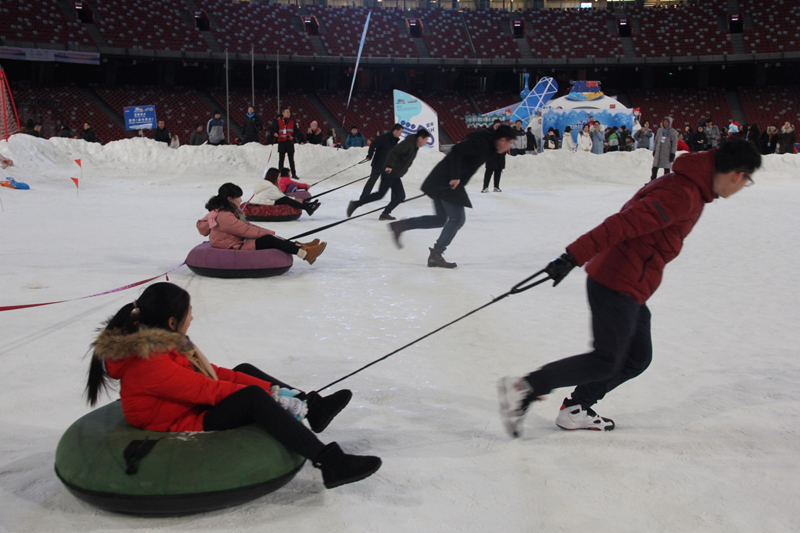 此次冰雪嘉年華活動以“共享冰雪盛宴”為主題,圍繞著“感恩、回饋、歡樂、激情”的總基調(diào),設(shè)計(jì)了一個又一個的精彩的環(huán)節(jié)。不僅有趣味十足的抽獎活動還有緊張刺激的雪圈賽跑與溫馨祥和的親子呼啦圈比賽。全方位滿足了到場觀眾的不同需求與愛好,讓他們在北京“貧雪”的日子里,同樣感受到了冰雪季應(yīng)有歡樂。