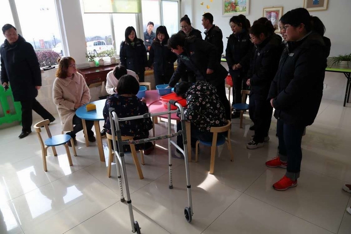 慰問期間,一站式服務(wù)中心的女員工們先后走進特教室、展覽室、情景室、康復(fù)室等場所,親切、耐心地與孩子們進行近距離溝通,了解他們的日常生活情況,讓孩子們沐浴在家庭般的溫暖和關(guān)愛中。志愿者們被孩子們天真無邪、樂觀向上、身殘志堅的精神面貌深深打動,對他們的手工藝品贊不絕口,紛紛對義賣作品解囊相購,肯定了每個孩子在社會上的意義和價值,鼓勵他們堅強勇敢、自立自強地生活。同時,志愿者們對福利院工作人員的辛勤付出致以崇高的敬意,對他們兢兢業(yè)業(yè)做好社會棄嬰和殘疾兒童的養(yǎng)育、治療、教育、康復(fù)、送養(yǎng)工作給予高度贊賞,并送上了節(jié)日祝福和慰問品。