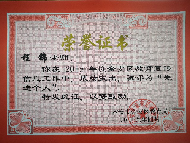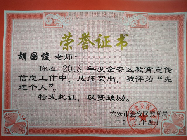 會(huì)議表彰了2018年度全區(qū)教育宣傳工作先進(jìn)單位和先進(jìn)個(gè)人。毛坦廠中學(xué)榮獲“2018年度全區(qū)教育宣傳信息工作先進(jìn)集體”稱號(hào),胡國(guó)俊、程錦榮獲“2018年度全區(qū)教育宣傳信息工作先進(jìn)個(gè)人”稱號(hào)。