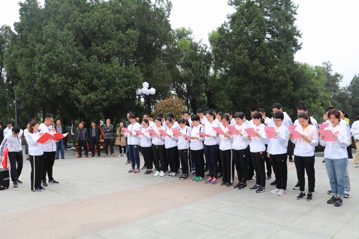 金寨縣紅軍廣場青松翠柏環(huán)繞,四季常青,整個廣場莊嚴(yán)肅穆,在廣場的革命烈士紀(jì)念塔前同志們整齊列隊,向犧牲的革命先烈敬獻(xiàn)花籃并默哀。來自霍山農(nóng)商銀行的青年黨員、團(tuán)員同志們齊聲作“五四我們的節(jié)日”詩詞朗誦,深情緬懷革命先烈的豐功偉績。