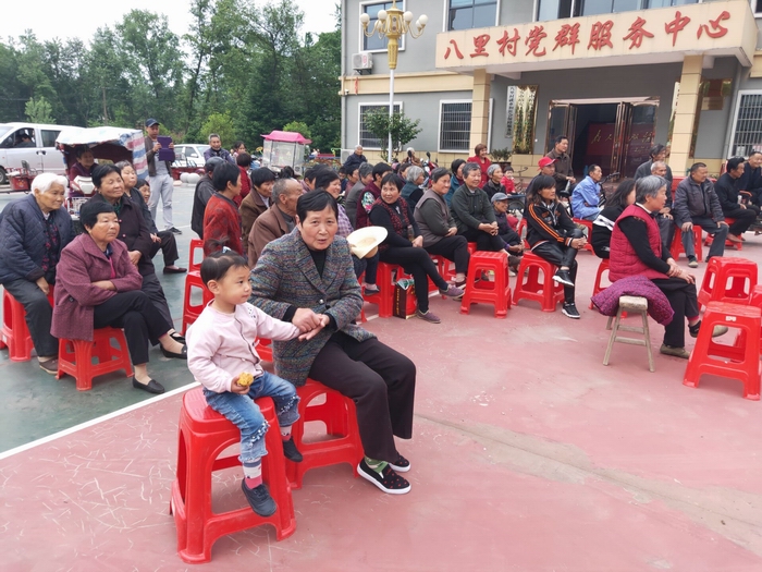 4月27日下午,蘇埠鎮(zhèn)八里村黨群活動(dòng)中心門前廣場(chǎng)上熱鬧非凡,鑼鼓陣陣,歡快的音樂在廣場(chǎng)上響起,吸引了當(dāng)?shù)鼐用袂皝碛^看。原來是“送戲進(jìn)萬村”活動(dòng)來到該村演出。