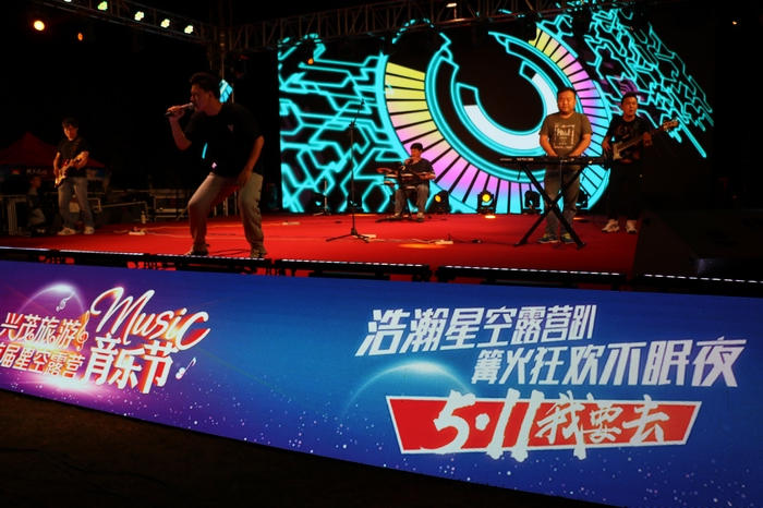 本次音樂節(jié)特邀請慶安街樂隊、晚安六安樂隊、原創(chuàng)民謠歌手現(xiàn)場助陣,活動當(dāng)天,現(xiàn)場人數(shù)高達(dá)萬人,為六安興茂·悠然藍(lán)溪國際旅游度假區(qū)掀起一股浪漫風(fēng)潮!此次活動內(nèi)容豐富,不僅有浪漫的星空露營,更有歡快的篝火晚會、露天電影及多樣的互動抽獎。在浩瀚的藍(lán)溪夜空下,一起露營擼串,大口喝酒,觀賞星空,看露天電影,篝火狂歡,無窮盡的露營新玩法,讓你暫時遠(yuǎn)離了城市喧囂,在此感受初夏的安祥!音樂轟趴中,為熱烈狂歡的盛會,為芳香馥郁的青春,為浩渺無垠的星空歌唱。
