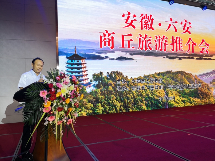 5月30日下午,由六安市人民政府主辦,舒城縣人民政府、六安市文旅局承辦的六安旅游推介會(huì)在河南商丘信華建國(guó)酒店舉行。出席本次推介會(huì)的領(lǐng)導(dǎo)有,商丘市文化廣電旅游局黨組書記、局長(zhǎng)孫玉林,商丘市文化廣電旅游局黨組副書記、副局長(zhǎng)路通,商丘市文化廣電旅游局宣傳推廣科科長(zhǎng)高丹,商丘市文化廣電旅游局宣傳推廣科科員陳輝,六安市文化和旅游局局長(zhǎng)魏武,六安市文化和旅游局副調(diào)研員王特等兩市文旅局相關(guān)領(lǐng)導(dǎo)、景區(qū)負(fù)責(zé)人、旅行社以及新聞媒體參加了此次推薦會(huì)。