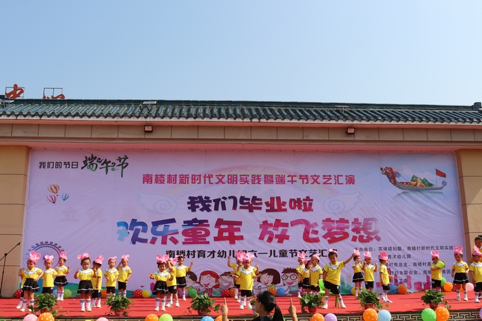 剛迎來“六一”的熱浪,端午節(jié)的新浪即將接踵而至。為豐富村民文化生活,營造同享共樂的節(jié)日氛圍,為了能讓孩子們度過愉快而有意義的節(jié)日,6月2日上午,蘇埠鎮(zhèn)南樓村攜手轄區(qū)育才幼兒園舉辦“歡樂童年放飛夢想”暨“慶六一?迎端午”文藝匯演。