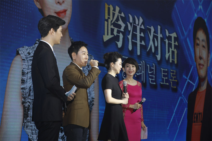 是什么樣的機緣,讓廣東觀眾在家門口就有這樣的眼福呢?廣州正佳集團副總裁余蘋與韓國PMC制作公司理事崔容碩展開對話。 (廣州市政府新聞辦公室 供圖)