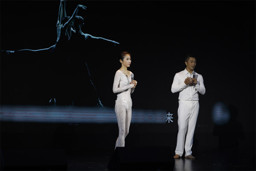 國際雜技比賽最高獎“金小丑”獎獲得者吳正丹、魏葆華夫婦肩上芭蕾展演,并講述中國藝術(shù)站上世界舞臺的故事。 (廣州市政府新聞辦公室 供圖)