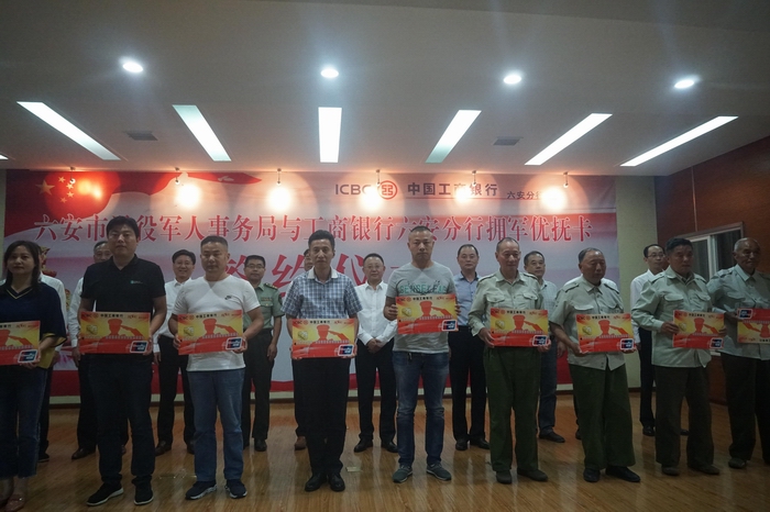 簽約儀式上,工商銀行六安分行現(xiàn)場為參會的退役軍人優(yōu)撫代表們發(fā)放了六安分行首批“擁軍優(yōu)撫卡”。