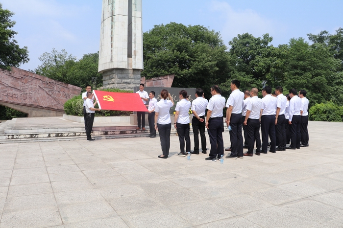 登上百步長階,在六霍起義紀(jì)念塔前,全體黨員干部面向黨旗,緊握右拳,重溫入黨誓詞,喚起入黨時的莊嚴(yán)承諾,在鮮紅的黨旗與傲然挺立的紀(jì)念塔前,接受心靈的凈化和洗禮。