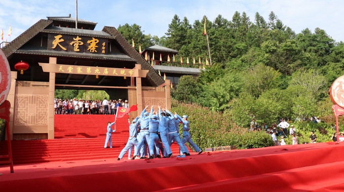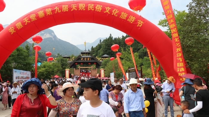開幕式上,開寨儀式、民俗展示、文藝演出、祈?;顒右来紊涎荩F(xiàn)場游人如織,不時掌聲雷動。天貺節(jié)當(dāng)天,活動主辦方精心安排了“七個一”的節(jié)慶活動:一場開寨儀式、一場開幕式、一場祈福儀式、一臺民俗文藝演出、一場千人吊鍋宴、一場大別山民俗風(fēng)情踩街秀、一場天貺民俗狂歡夜。接連不斷的精彩系列活動讓前來天堂寨的游客們直呼“不虛此行”。