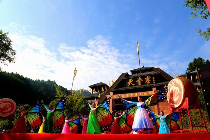 據(jù)了解,純樸的大別山人民,以親情為紐帶,祈愿上天賜福、風(fēng)調(diào)雨順、天隨人意。盛世社會,國泰民安,人們在豐衣足食之余,更增加了對文化生活的向往。勤勞智慧的勞動人民創(chuàng)造了許許多多的節(jié)日??v觀農(nóng)歷節(jié)日,幾乎每月皆有,但唯獨在一年過半的六月少有節(jié)日。大別山“六月六“接姑娘回門的傳統(tǒng)節(jié)日,彌補了中華民族農(nóng)歷六月節(jié)日的空缺,它因豐富的文化淵源和溫馨的親情內(nèi)涵而受到人們的青睞,一直沿續(xù)至今。自2010年開始,天堂寨將這種傳統(tǒng)節(jié)日挖掘出來,充實到旅游文化中去,每年同廣大游客一起參與互動、共同過節(jié)慶賀,推獨輪車、打花棍、吃大吊鍋、喝小吊酒,眼花繚亂的 “民俗味”深受游客喜愛,游客們驚呼“到天堂寨過天貺節(jié)大飽眼福、大飽口福,過癮”!天貺節(jié)至今已舉辦八屆,它已成為大別山天堂寨的文化名片,吸引越來越多的游人來天堂寨觀光旅游?!疤熨L”是上天賜福的意思,表達了勞動人民祈求平安、順利、幸福的美好愿望。每年農(nóng)歷六月初六是大別山天堂寨地區(qū)傳統(tǒng)的天貺節(jié),又叫半年節(jié),后演變?yōu)椤敖庸媚锕?jié)”。每年這個時候,江淮之間麥割罷、茶采完,主要農(nóng)作物水稻尚未成熟,農(nóng)民也難得有一段忙里偷閑的時間。正值半年,祈愿下半年風(fēng)調(diào)雨順、五谷豐登,同時也通過接嫁出去的姑娘回門、接未過門的新媳婦上門,共同慶賀歡樂時刻,增添其樂無窮的天倫之樂。新女婿或娘家兄弟推著獨輪車接姑娘回來,由于與在家的鄉(xiāng)親們平日農(nóng)忙難得一見,村里的大姑娘小媳婦們便聚在村頭稻場上打著歡快的花棍,歡聚一堂,互相慶賀,祈愿豐收。席間大家圍坐在吊鍋前絮叨著家長里短、兒女情長,品嘗著美味的大吊鍋,喝著自釀的小吊酒,享受快樂時光。本屆天貺節(jié)活動將持續(xù)到7月12日,致力打造天堂寨旅游文化周。活動共有開寨儀式、民俗文化展示、攝影比賽、美食嘉年華、踩街、千人免費吊鍋宴及文藝晚會七大板塊。本屆天貺節(jié)在開寨儀式中,融入了祈福環(huán)節(jié),讓現(xiàn)代科技與古風(fēng)文化完美結(jié)合,打造別開生面的開寨儀式。大型史詩類歌舞劇目《天堂情》用歌舞、情景表演的方式從天堂寨的初始建立到歷史發(fā)展,再到當(dāng)代旅游業(yè)的發(fā)展與脫貧攻堅戰(zhàn)略帶來的變化進行演示,將天堂寨特有的民俗獨輪車、花棍等融入節(jié)目之中,展示了天堂寨獨特的文化魅力。(影視圖文/馬?。?br/>