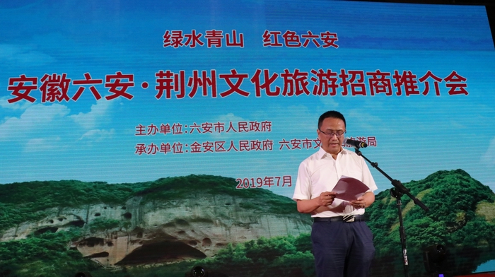 7月12日,“綠水青山紅色六安”六安?荊州文化旅游招商推介會在美麗的濱江城市荊州舉辦。六安市副市長王嵐、荊州市副市長唐煒、荊州市政協(xié)副主席林紅、六安市政府副秘書長王勇、六安市文化和旅游局局長魏武、荊州市文化和旅游局局長劉宗彪,以及六安市部分市直單位負(fù)責(zé)人、各縣區(qū)分管領(lǐng)導(dǎo)、旅游部門負(fù)責(zé)人、兩市知名旅游企業(yè)負(fù)責(zé)人、景區(qū)代表以及媒體記者參與了本次推介會。