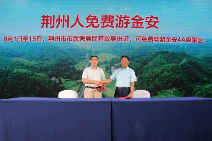 活動現(xiàn)場,兩地旅游行業(yè)協(xié)會簽訂客源互送框架協(xié)議,發(fā)布“荊州人免費游金安”優(yōu)惠政策,即8月1日至15日,荊州市民憑居民有效身份證,可免費暢游金安4A景區(qū)。