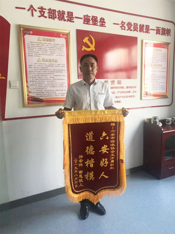 危急關(guān)頭,六安市游泳協(xié)會(huì)游泳愛(ài)好者、共產(chǎn)黨員、退伍軍人、六安工行員工王方勇同志毫不猶豫,不顧個(gè)人安危,立即沖向水中掙扎的少年。王方勇同志竭盡全力,與漩渦暗涌搏斗。最終,在多位泳友合力相救下,少年最終成功獲救。