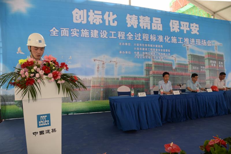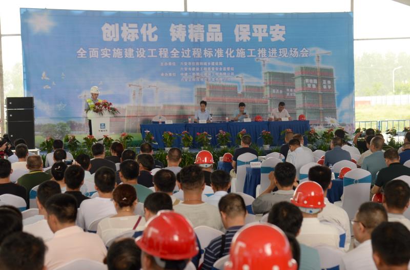 六安市住建局副局長、周正穩(wěn)強調指出:“主要的目的是通過抓示范引領,通過加強全過程的標準化、制度化、規(guī)范化建設來保證建設精品工程,來保證安全生產有保障。這次通過中建二局在這個項目上的創(chuàng)建成果展示,組織我們廣大的施工企業(yè),建設單位、監(jiān)理單位來組織觀摩學習,就是要學習他們創(chuàng)建的辦法和措施和經驗,來推動全市的創(chuàng)建工作。同時我們結合“三個以案”的專項行動,通過查隱患、防風險、保平安,結合近兩年來建筑安全事故的教訓,通過以案示警,以案為界,以案促改工作,保證我們建筑安全生產形勢平穩(wěn),和質量精品工程的創(chuàng)建工作?!埃R健 文世杰/文圖)