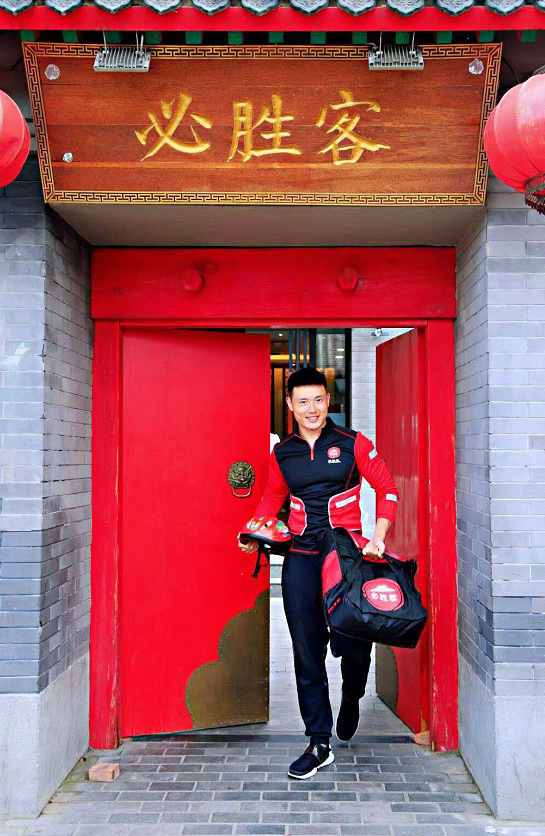 外送員帶著新鮮出爐的美食從北京南鑼鼓巷必勝客出發(fā)