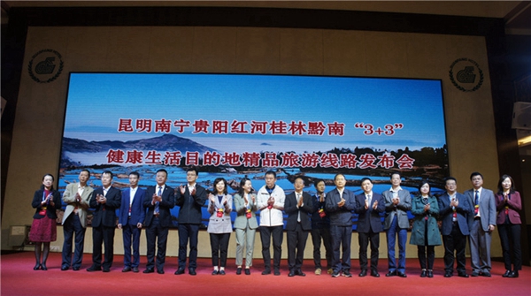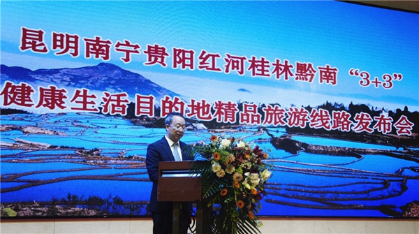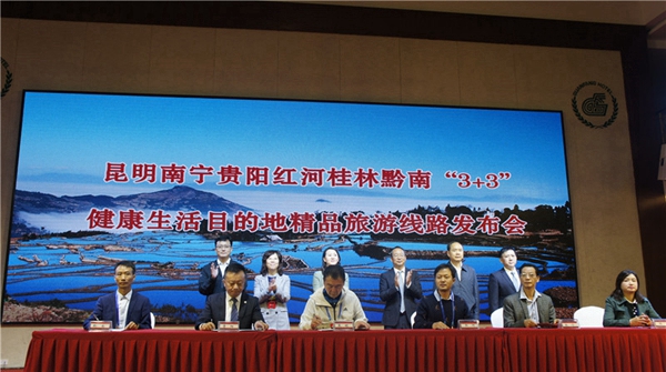 為進(jìn)一步加大昆明、南寧、貴陽、紅河、桂林、黔南六地文化旅游方面的合作,增強(qiáng)區(qū)域文化旅游吸引力,借昆明南寧貴陽與紅河桂林黔南“3+3”政協(xié)跨區(qū)域協(xié)商會(huì)議在紅河州召開之機(jī),10月15日,昆明南寧貴陽紅河桂林黔南“3+3”健康生活目的地精品旅游線路發(fā)布會(huì)在紅河州蒙自市召開。