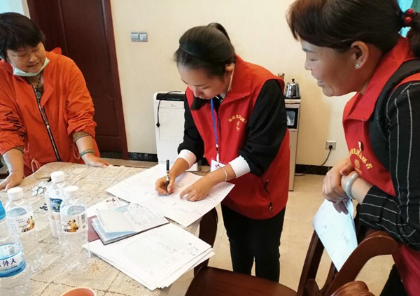 (志愿者為異地搬遷戶辦理入住手續(xù))