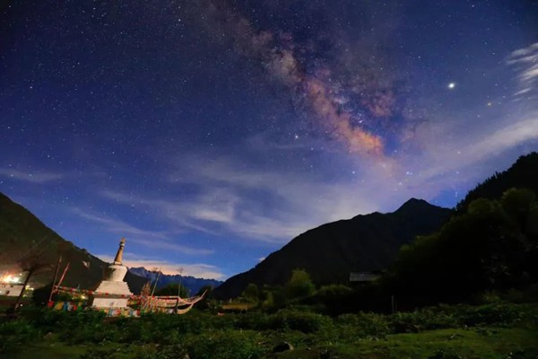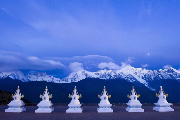 如果將時間切換到午夜24點的雨崩,云南最壯觀的雪山山群正睡在滿天星光里,梅里雪山群山雪峰高聳、清冷而孤寂。