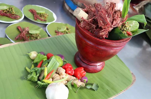 當(dāng)天,活動(dòng)現(xiàn)場人潮涌動(dòng),氣氛熱烈。專家評(píng)委、飲食達(dá)人及聞?dòng)嵡皝淼娜罕姽餐^看了各式特色菜的制作過程。競技臺(tái)上,整齊擺放的鍋碗瓢盆,鮮味十足的食材,讓現(xiàn)場觀眾充滿了期待。在大廚們的“現(xiàn)場演出”中,炸酥肉、柴氏手撕雞、勐汞鹵肉、響馬菜、手撕干巴、石花菜檸檬豬耳等一道道散發(fā)著誘人香味的美食逐一完成,刺激著現(xiàn)場所有人的味蕾。