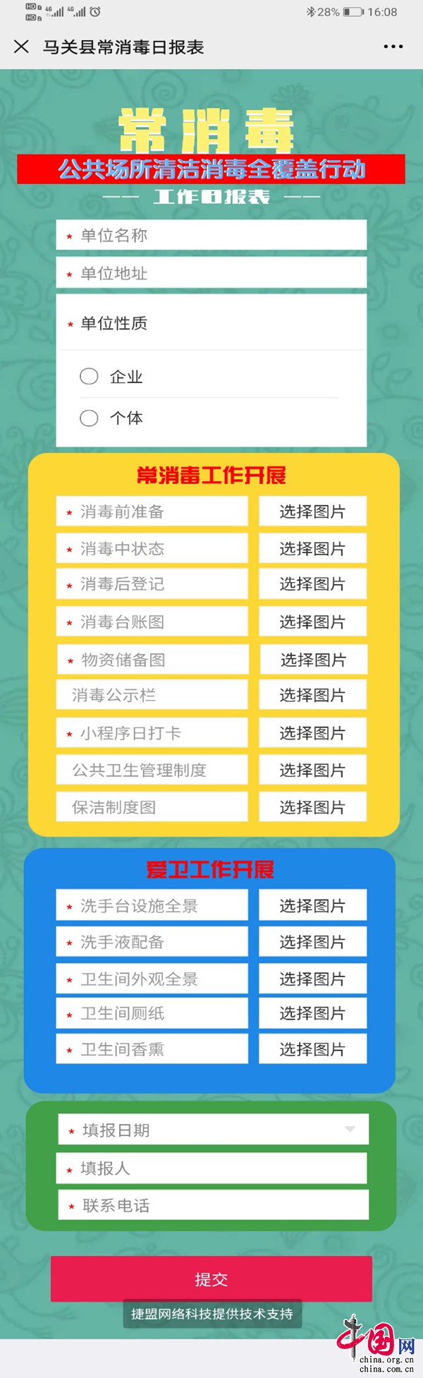 在推進愛國衛(wèi)生“7個專項行動”中,該局利用電子表單的形式,設(shè)計制作了“公共場所清潔消毒全覆蓋行動工作日報表”系統(tǒng),專項用于全縣各加油站、規(guī)模超市、專業(yè)市場愛衛(wèi)工作日常數(shù)據(jù)報送。