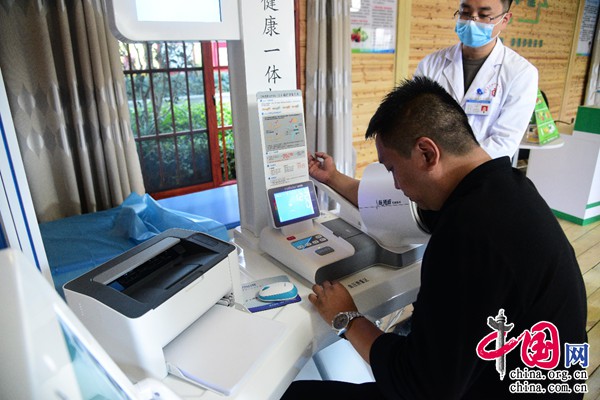 在馬關(guān)縣健康主題公園的智慧型健康小屋,群眾通過智能檢測設(shè)備便可進行身高、體重、體溫、血氧、血壓、血糖、人體脂肪含量等項目的自助檢測,并自動生成個人身體指標報告,十分方便。