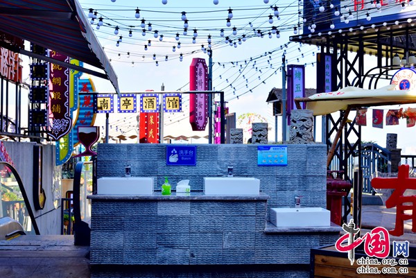 “茶馬花街長度300余米,100余家店鋪,通過旅游文化步行街一條主軸線、二條巷道、三條連廊、兩廣場的布局,將14幢二至四層的老昆明民國風(fēng)貌并融入現(xiàn)代商業(yè)元素的建筑體其中?!辈桉R花街運營經(jīng)理宋駿濤介紹,茶馬花街位于西山風(fēng)景區(qū)入口處,是昆明西山國家級風(fēng)景名勝景區(qū)(4A級景區(qū))龍門核心景區(qū)的必經(jīng)之地。作為景區(qū)的一條商業(yè)街每天接待游客1至1.5萬人次,周末時達2萬人次。洗手設(shè)施的建設(shè)是一項給予游客市民提供便利、提供干凈的惠民工程。