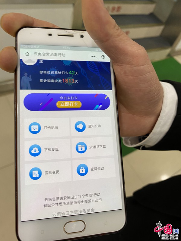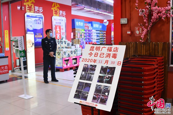 “每隔兩小時(shí)便會(huì)使用1比500的84消毒液進(jìn)行一次消毒。”西山區(qū)家樂(lè)福(廣福店)安全管理部經(jīng)理王愛(ài)光介紹,作為人流量較大的公共場(chǎng)所,超市扶梯、購(gòu)物車、購(gòu)物籃、衛(wèi)生間、公共區(qū)域等都是消毒重點(diǎn),并且每完成一遍工作人員會(huì)上報(bào)至“云南省常消毒行動(dòng)”小程序進(jìn)行記錄,最后拍照記錄,裝訂成冊(cè)。