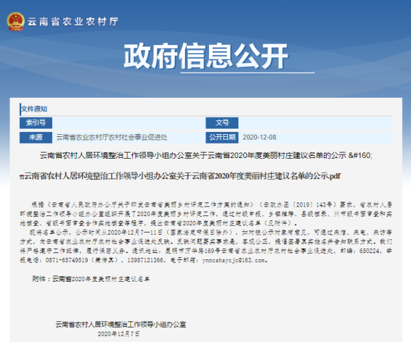 附:云南省2020年度美麗村莊建議名單(1017個)