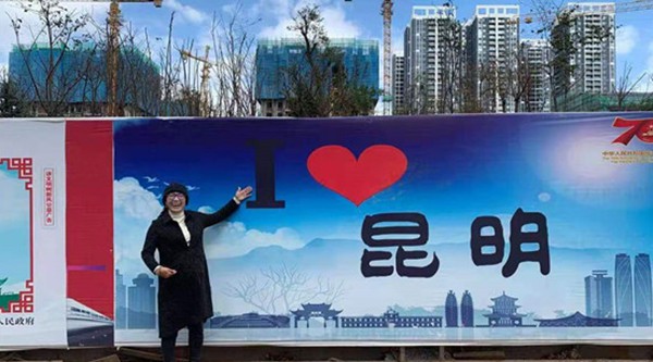 (青·查姆棱(左二)在昆明參展。受訪者供圖)