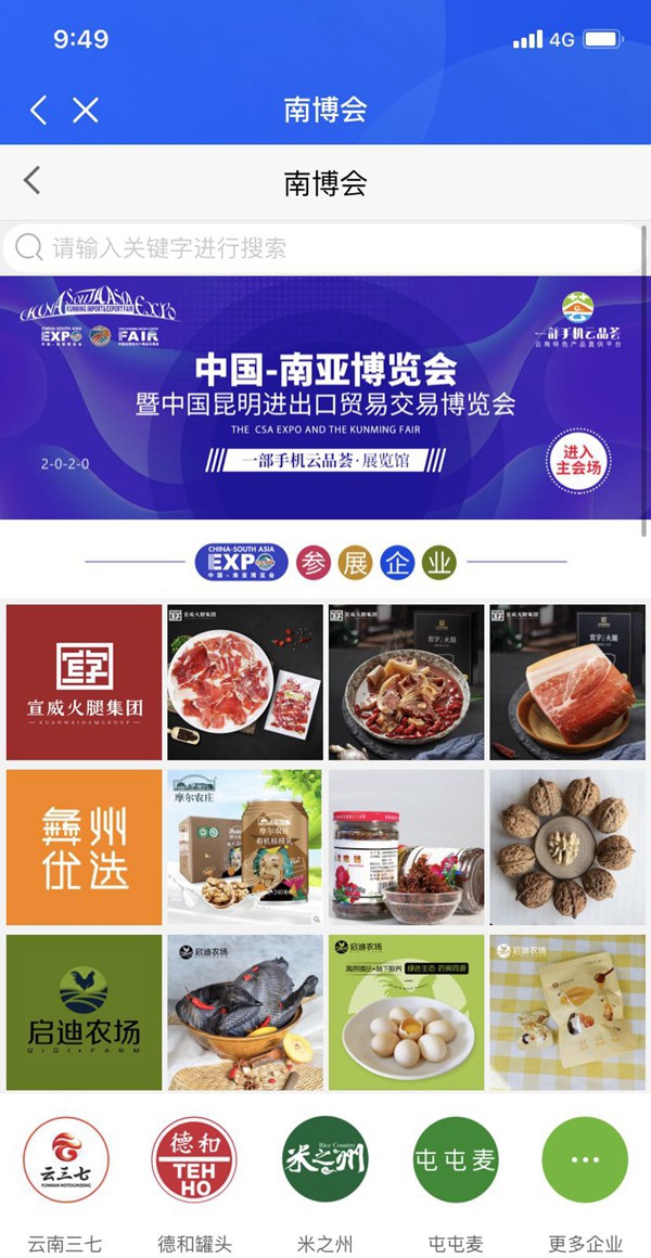 在2020“永不落幕的南博會(huì)”在線展(以下簡稱:“在線展”)中,“一部手機(jī)云品薈”既是參展企業(yè),也是招展企業(yè),其負(fù)責(zé)人王金合介紹說,“作為參展企業(yè),我們會(huì)帶著平臺上的600多個(gè)云南本地商家集體、5000多種商品參展參與‘云上南博會(huì)’,這些產(chǎn)品都圍繞著云南省八大重點(diǎn)產(chǎn)業(yè)、十大名品、三品一標(biāo)、一縣一業(yè)等,進(jìn)一步做到‘云品出滇’?!徊渴謾C(jī)云品薈’平臺專區(qū)目前已“上線”云上南博會(huì)數(shù)字化會(huì)展平臺的首頁,點(diǎn)擊進(jìn)入后,消費(fèi)者即可鏈接云品薈。同時(shí),我們也作為招展企業(yè),在全國范圍內(nèi)招展,目的是擴(kuò)大參展規(guī)模,積極參與到在線展中?!?/p>