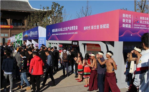 12月12日,由云南省委宣傳部主辦,的創(chuàng)意云南2020云上文化產(chǎn)業(yè)博覽會(huì)(以下簡(jiǎn)稱(chēng)“云南云上文博會(huì)”)在昆明融創(chuàng)滇池后海積善廣場(chǎng)隆重開(kāi)幕。臨滄當(dāng)?shù)匦麄?、文旅、交通、演藝等部門(mén)組團(tuán)到昆推介,臨滄展區(qū)帶來(lái)的富有地方特色的民族服飾、熱歌勁舞備受關(guān)注,引得參展游客頻頻駐足圍觀。