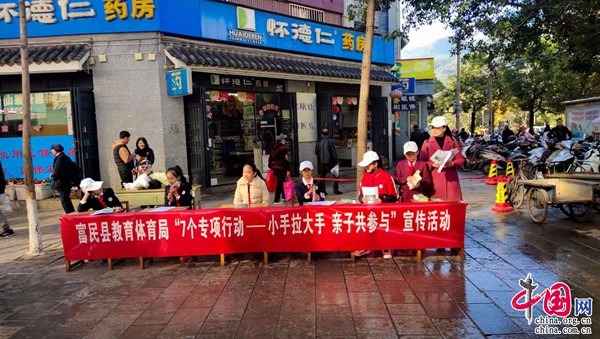 為發(fā)動(dòng)師生(幼兒)以實(shí)際行動(dòng)帶動(dòng)和激發(fā)廣大家長(zhǎng)、群眾全員參與愛(ài)國(guó)衛(wèi)生“七個(gè)專項(xiàng)行動(dòng)”的熱情,推動(dòng)云南省昆明市富民縣新時(shí)代愛(ài)國(guó)衛(wèi)生運(yùn)動(dòng)和常態(tài)化疫情防控不斷取得新成效,12月11日起,富民縣教育體育系統(tǒng)開展了“小手拉大手 親子共參與”愛(ài)國(guó)衛(wèi)生系列活動(dòng)。