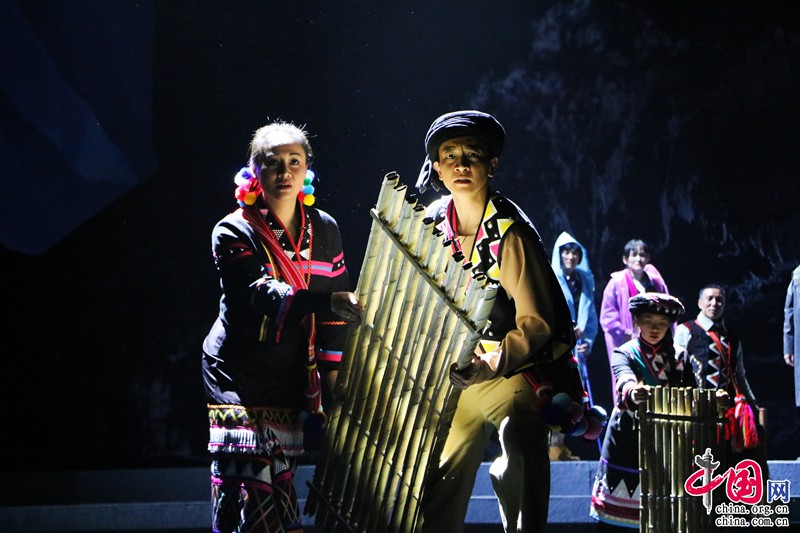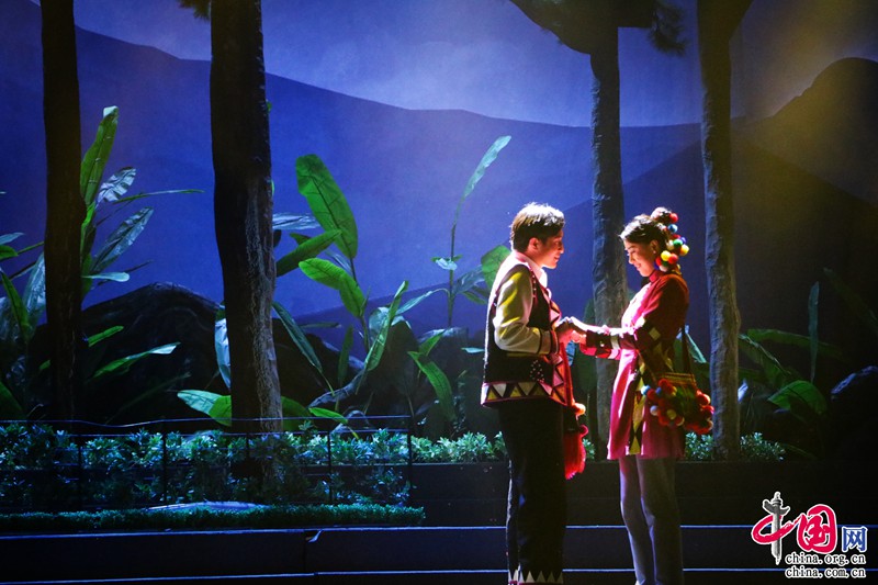 同時(shí),根據(jù)劇情需要融入的獨(dú)特的拉祜族音樂和舞蹈,成為本劇的一大亮點(diǎn)。由瀾滄縣民族文化工作隊(duì)的演員帶來的原汁原味的拉祜族歌舞貫穿了整個(gè)演出,與劇情的發(fā)展融合貫穿,形成了本劇獨(dú)特的藝術(shù)色彩和藝術(shù)風(fēng)格。