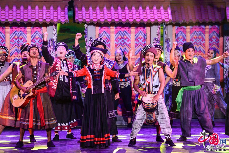 報告劇把習(xí)近平總書記關(guān)于扶貧工作的重要論述融入其中,用音樂、舞蹈、話劇等藝術(shù)手法編排,集政治性、時代性、藝術(shù)性、群眾性為一體,充分展示了邊疆地區(qū)各族人民在黨的領(lǐng)導(dǎo)下脫貧攻堅取得的豐碩成果。報告劇從最初立項、采風(fēng)到最后的呈現(xiàn),全部選用普洱市本土的文藝工作者,用人民的語言塑造人民的形象,用人民的歌聲點贊人民的生活,既呈現(xiàn)了普洱斐然的脫貧成績,也展現(xiàn)了普洱豐富多彩的民族文化。報告劇由序《愚公移山》、第一篇章《播種》、第二篇章《深耕》、第三篇章《收獲》和尾聲《賓弄賽嗨》組成,體現(xiàn)了鮮明的價值導(dǎo)向、質(zhì)樸的群眾情懷、昂揚的時代精神、多彩的民族文化、邊疆的滄桑巨變、美好的發(fā)展藍(lán)圖。