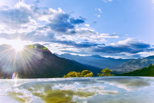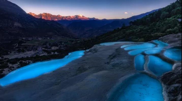 陽光會把池水折射出不同的色彩,加上藍(lán)天白云的倒影,整個(gè)白水臺好似仙境一般,讓人流連忘返。