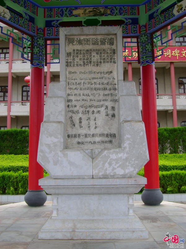 民族團(tuán)結(jié)園位于寧洱縣城北側(cè),建有牌坊大門、古式六角碑亭、仿古彩繪主大樓、佛雕等建筑,是一座集觀賞、參觀、教育于一體的園地。2003年被省委、省人民政府列為云南省第二批社會(huì)主義教育基地、愛國主義教育基地,象征著新中國成立后,邊疆各族在中國共產(chǎn)黨的領(lǐng)導(dǎo)下,一個(gè)嶄新的社會(huì)主義民族關(guān)系的開始。