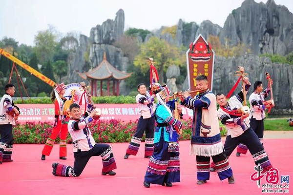2021年元旦,由石林風景名勝區(qū)管理局和廣東南方衛(wèi)視共同打造的“我和石林有個約會”——漫游石林·慢享生活活動啟動儀式舉行。六名在“我和石林有個約會——漫游石林·慢享生活——石林旅游體驗師招募大行動”中脫穎而出的旅游博主和攝影達人,現(xiàn)場觀看了精彩的民族歌舞演出,參與了“學(xué)說彝族話”“學(xué)跳大三弦”“猜新娘”等互動游戲,陣陣掌聲與歡笑將現(xiàn)場氣氛不斷推向高潮。
