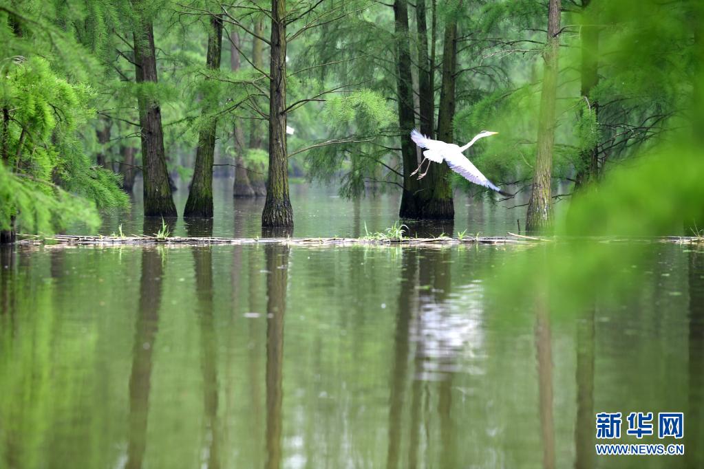 位于安徽省滁州市來(lái)安縣雷官鎮(zhèn)的池杉湖國(guó)家濕地公園經(jīng)過(guò)多年的生態(tài)修復(fù),形成分布數(shù)萬(wàn)株池杉樹(shù)、具有獨(dú)特觀賞價(jià)值的“水上森林”濕地景觀,成為眾多鳥(niǎo)類(lèi)生活、棲息的“天堂”。